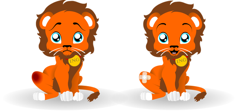 I have designed this little lion (implementing corporate orange color) and active elements to heal him, animated it and programmed the original version (below) myself. It was later reprogrammed differently to communicate with facebook pages properly. Supposedly, this facebook aplication works perfectly and little children kept asking their parents to heal the little lion again and again.